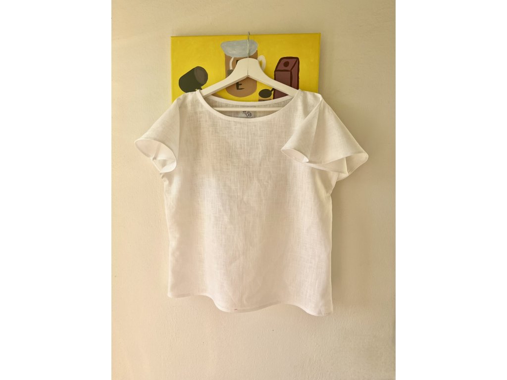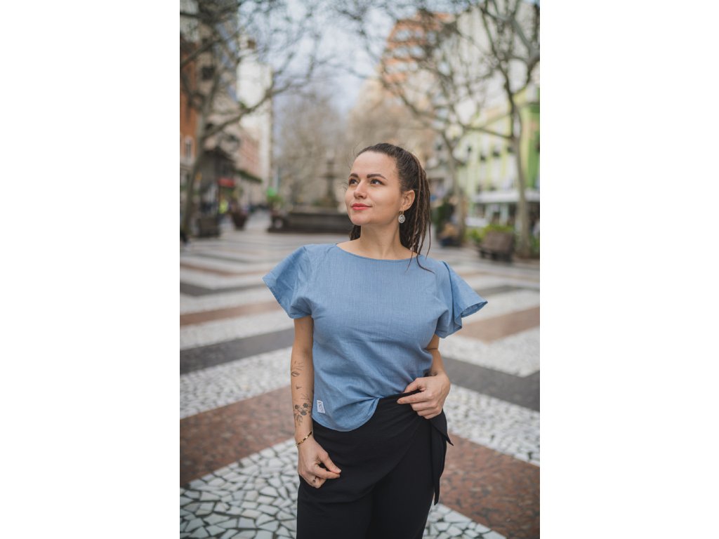 Voľné tričko s jemnými volánmi na rukávoch. Je ideálne na bežné dni, prechádzky mestom, kávu s kamarátkou aj neformálne stretnutia. Vďaka prírodnému materiálu ti v ňom bude príjemne aj počas horúcich letných dní. Môžeš si vybrať z konfekčných veľkostí alebo ti ho ušijem na mieru.